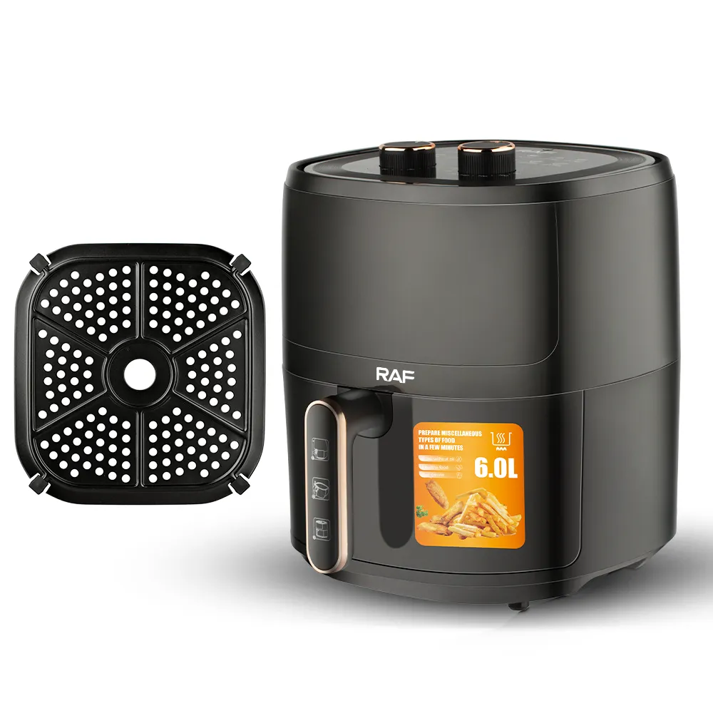 Въздушен фритюрник RAF 5324B - Фритюрник с горещ въздух, без масло, капацитет 6 л, 1500 W, черен