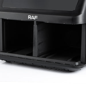 Friteuza cu aer RAF R.5382 este echipată cu două coșuri independente de 5+5 litri, permițând prepararea simultană a diferitelor alimente, chiar și la temperaturi diferite. Este soluția ideală pentru familii sau pentru cei care vor să economisească timp în bucătărie.