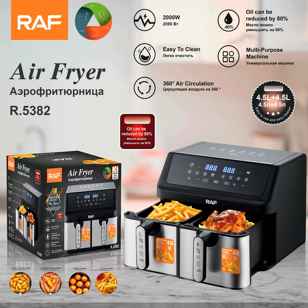 Friteuză cu Aer Digitală RAF R.5382, 10L (5L+5L), Dublu Coș, Control Tactil