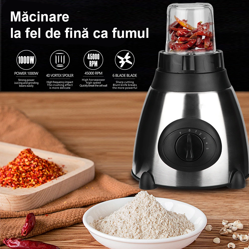 Ηλεκτρικό μπλέντερ 2 σε 1 RAF 300 με μπολ από ανοξείδωτο χάλυβα και μύλο Masala, Χωρητικότητα 1,5L, 1000W