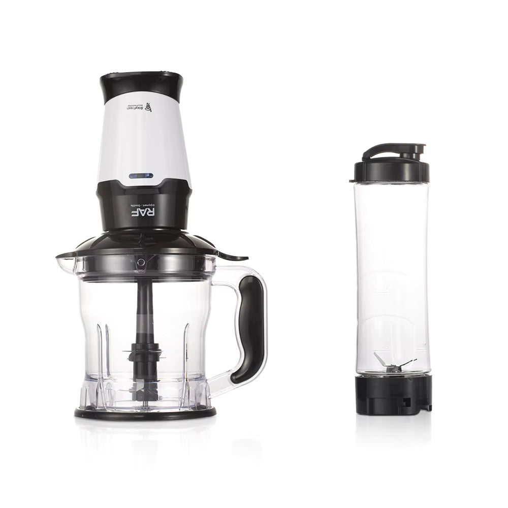Blenderul RAF R.2905 este un aparat multifuncțional 2-în-1, perfect pentru smoothie-uri, shake-uri, sucuri și preparate din fructe sau legume. Cu un design compact și operare simplă, îți oferă prospețime și putere la o singură apăsare de buton.