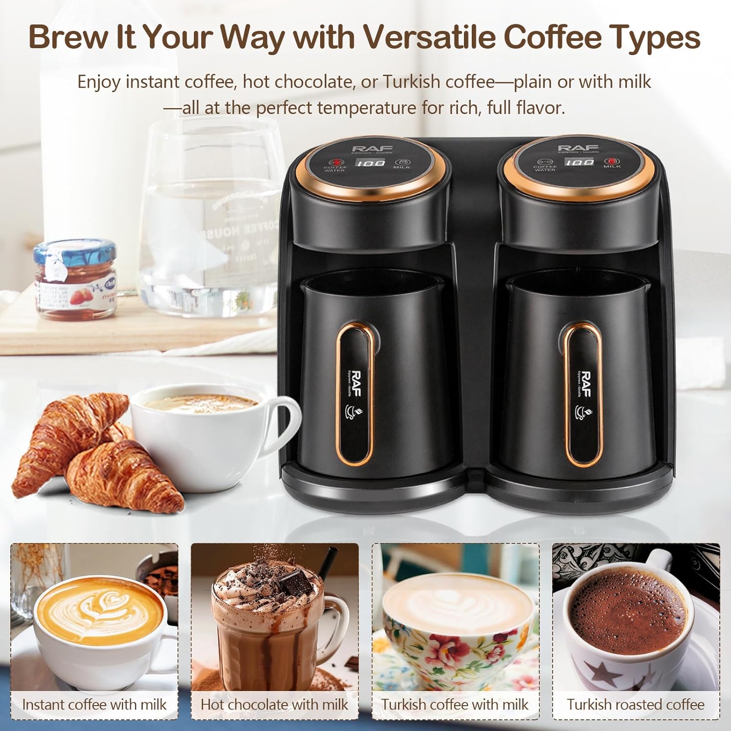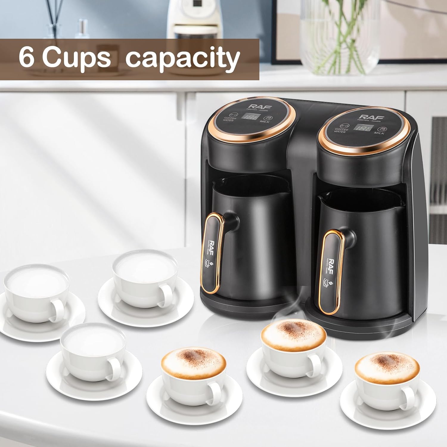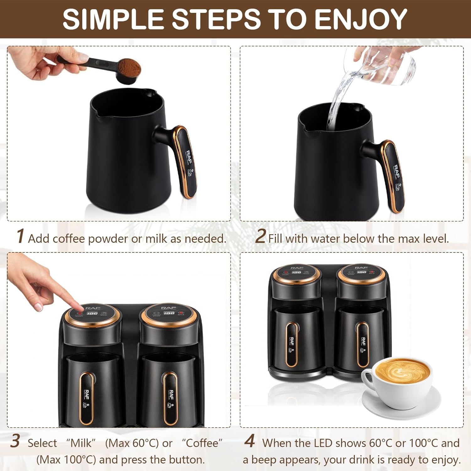 Cafetiera RAF R145 îți permite să prepari cafea turcească cremoasă și aromată rapid și fără efort. Sistemul complet automat pornește cu un singur click și oprește procesul automat, anunțând prin semnal sonor când cafeaua este gata.