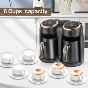 Σπίτι Cafetieră Electrică Turcească RAF R145, 0.3L + 0.3L, 600W, Sistem Dublu, Auriu/Negru