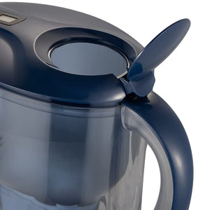 Ecranul LCD integrat indică durata de viață a filtrului și te avertizează când este necesară înlocuirea. Gura de scurgere anti-praf protejează apa de impurități externe, iar mânerul ergonomic permite turnarea ușoară chiar și atunci când cana este plină.
